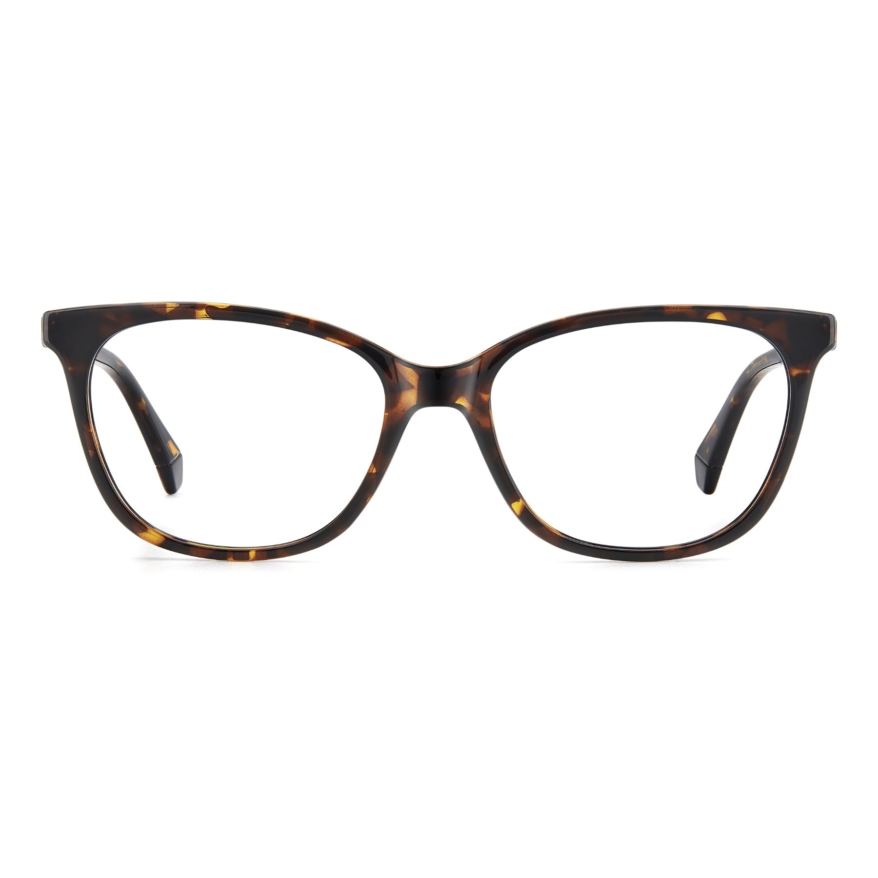 A linear yet noteworthy design defines these women’s eyeglasses by Polaroid. What makes them unique are the slender and lightweight shapes made of eco-polyamide, synonymous with a conscious choice. The slight cat-eye shape is feminine and discreet, perfect for days at the office and time off. The colour palette? Classic for timeless options, or two-tone for a Pop accent with Polaroid character.