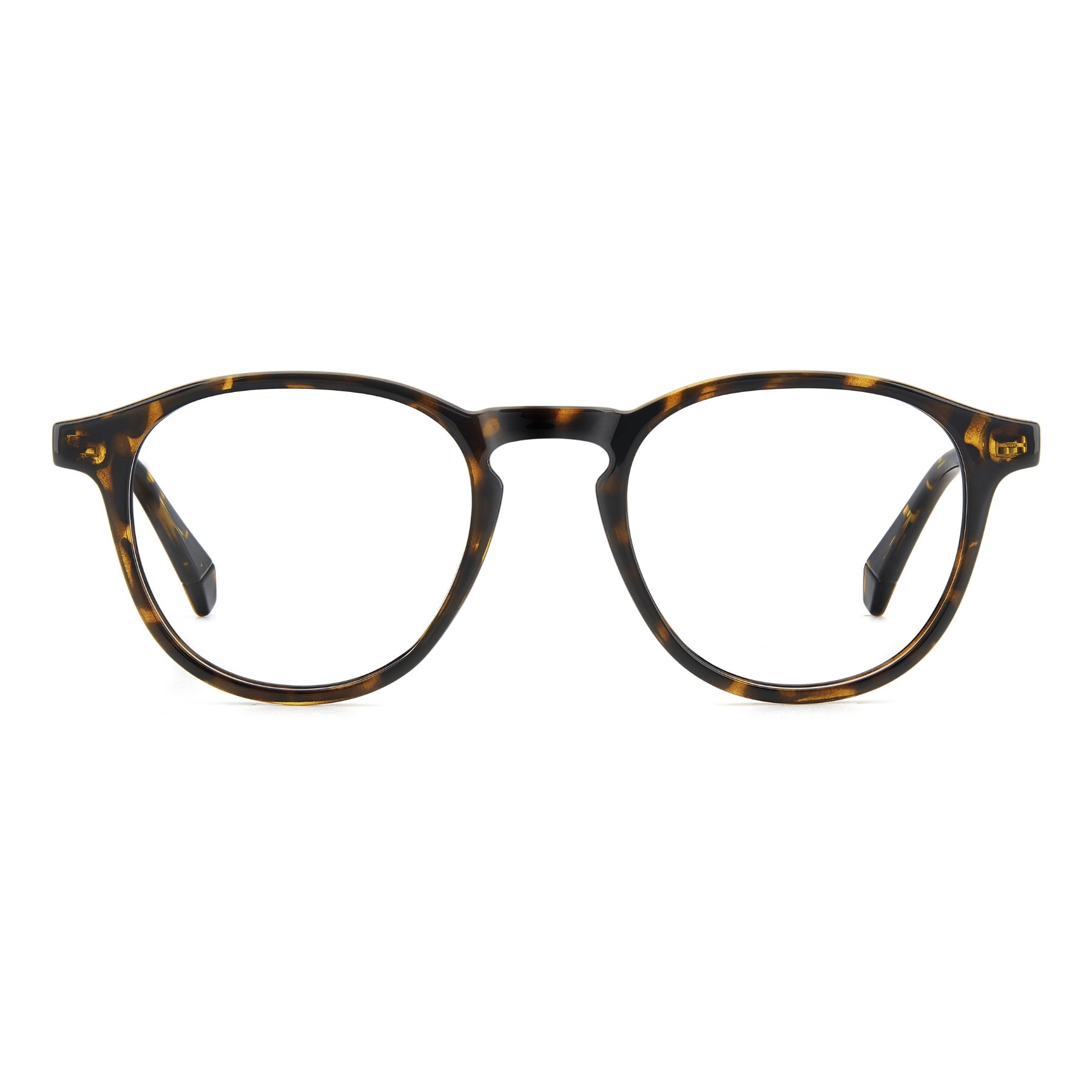 These Polaroid men's eyeglasses are to choose now and wear always. Indeed, they’re a perfect example of practicality: with a slender eco-polyamide structure, they stand up to everyday use while remaining light weight. From their pantos shape with a keyhole bridge up to their harmonious lines, everything comes together for a timeless look. Polaroid makes its move and gives them playfully juxtaposed transparencies. The result is convincing and anything but boring.