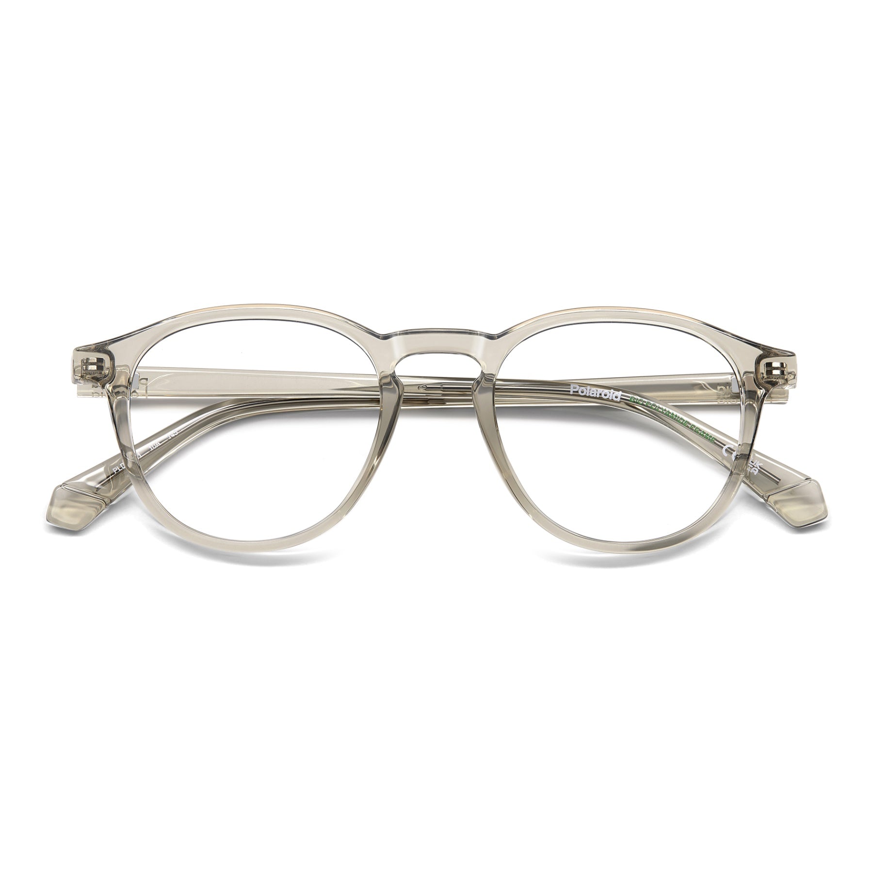 These Polaroid men's eyeglasses are to choose now and wear always. Indeed, they’re a perfect example of practicality: with a slender eco-polyamide structure, they stand up to everyday use while remaining light weight. From their pantos shape with a keyhole bridge up to their harmonious lines, everything comes together for a timeless look. Polaroid makes its move and gives them playfully juxtaposed transparencies. The result is convincing and anything but boring.