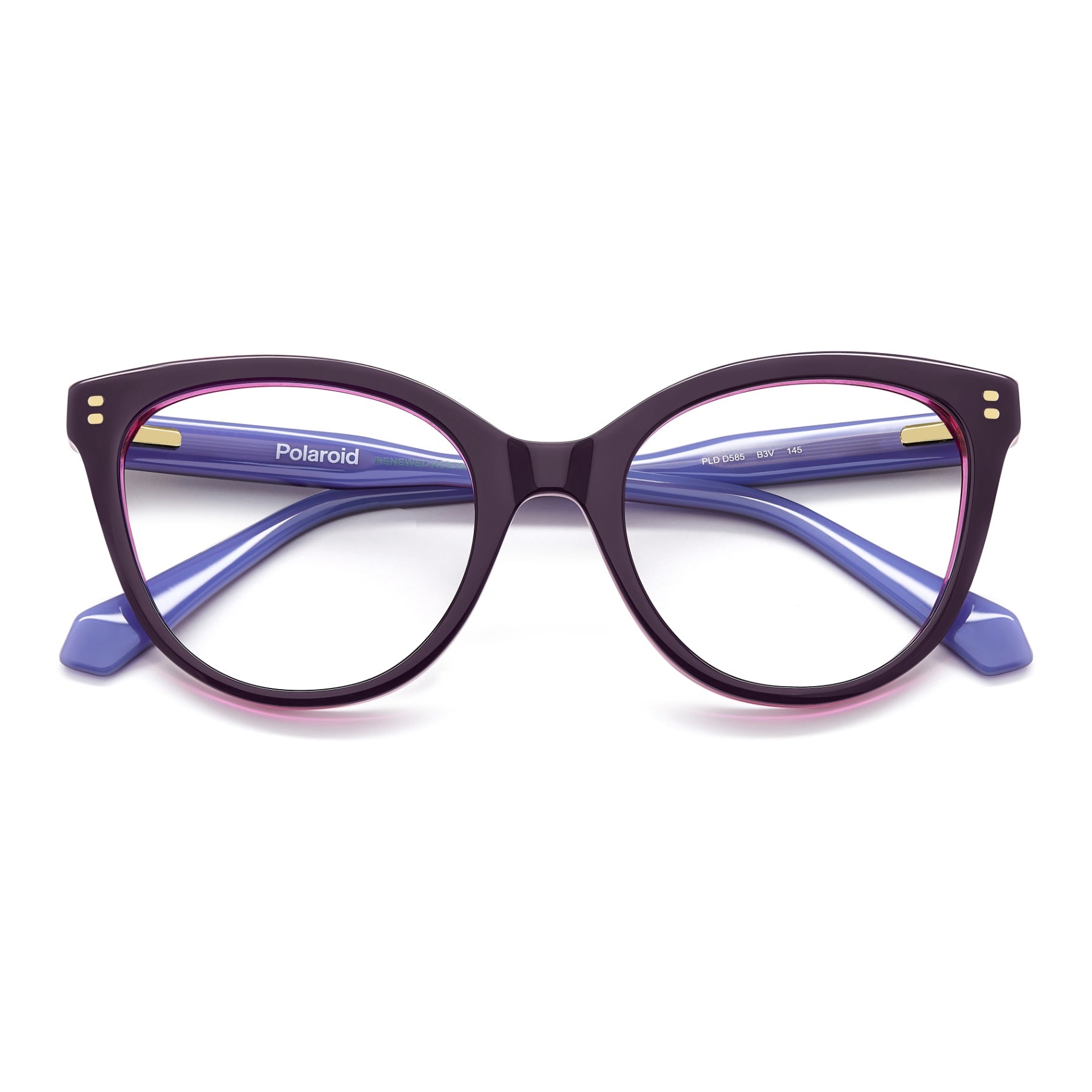 Sustainable materials and unexpected details are the secret to these Polaroid optical glasses for women. The eco-acetate structure features flexible hinges, making this style a pleasure to wear and kind to the planet. These glasses come in different colourways, including an option with a multi-layer front or with the wire core visible on the inside. The brand's iconic details are a must, including the rivets inspired by the logo and the Polaroid name.