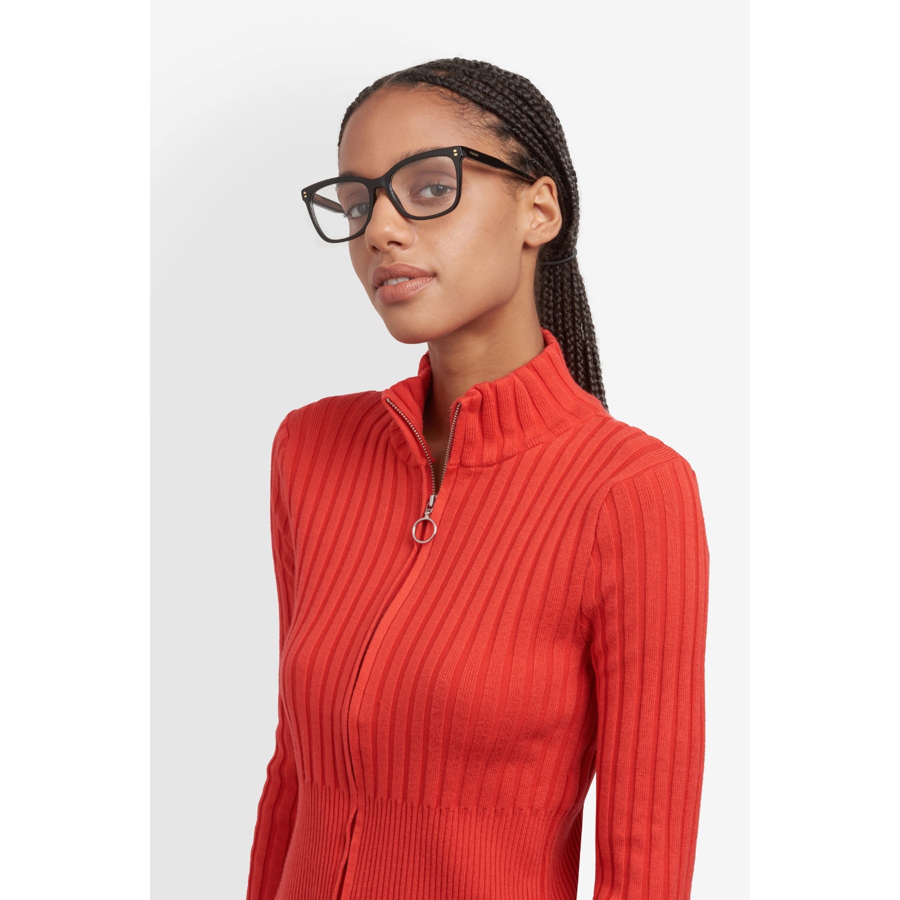 These women's eyeglasses by Polaroid are a flawless classic that goes seamlessly with any outfit. Crafted in eco-acetate, they’re elegant in their simplicity, with front rivets inspired by the Polaroid logo. Flexible hinges ensure an impeccable fit. The personality of this style comes through in the colour palette, including in the version with a multi-layer front and the one with clear temples in which the wire core is visible. For get-noticed style that’s truly effortless.