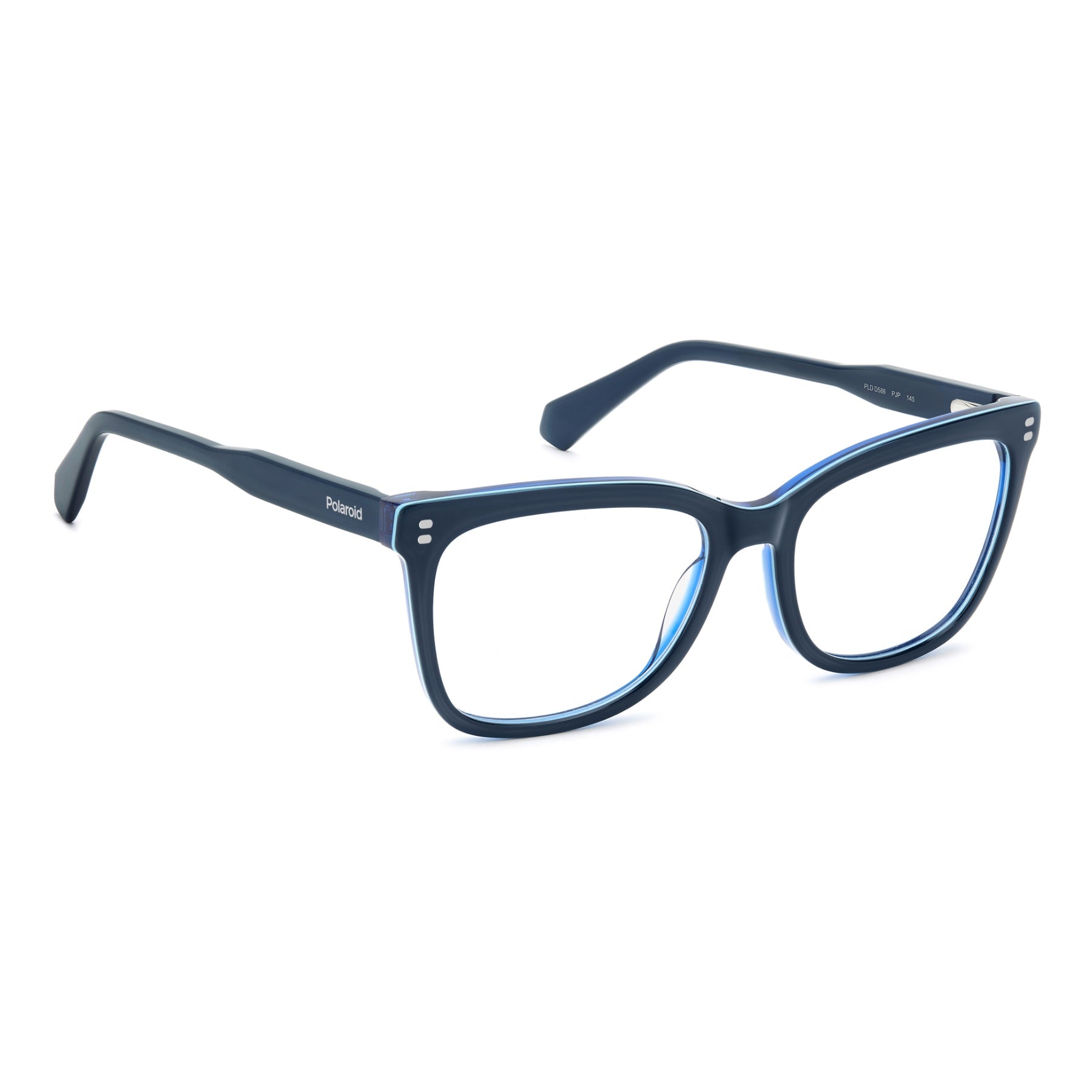These women's eyeglasses by Polaroid are a flawless classic that goes seamlessly with any outfit. Crafted in eco-acetate, they’re elegant in their simplicity, with front rivets inspired by the Polaroid logo. Flexible hinges ensure an impeccable fit. The personality of this style comes through in the colour palette, including in the version with a multi-layer front and the one with clear temples in which the wire core is visible. For get-noticed style that’s truly effortless.