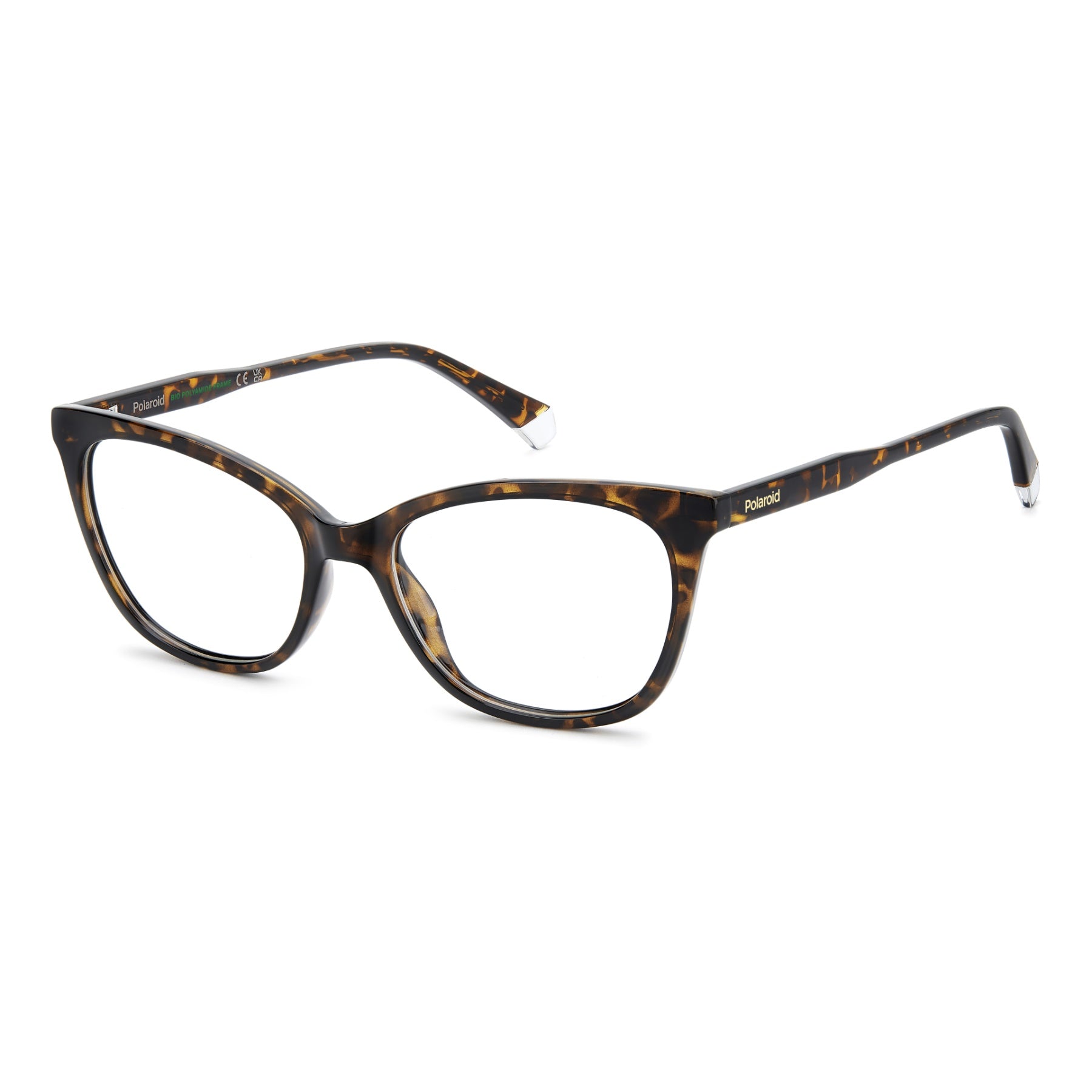 These women’s Polaroid eyeglasses are timeless thanks to their essential style. The cat-eye front is simple and elegant and the slender lines of the structure ensure a lightweight fit. This style comes in black, havana, and transparent seasonal hues. Every colourway has clear end tips, a playful element that’s unmistakably Polaroid.
