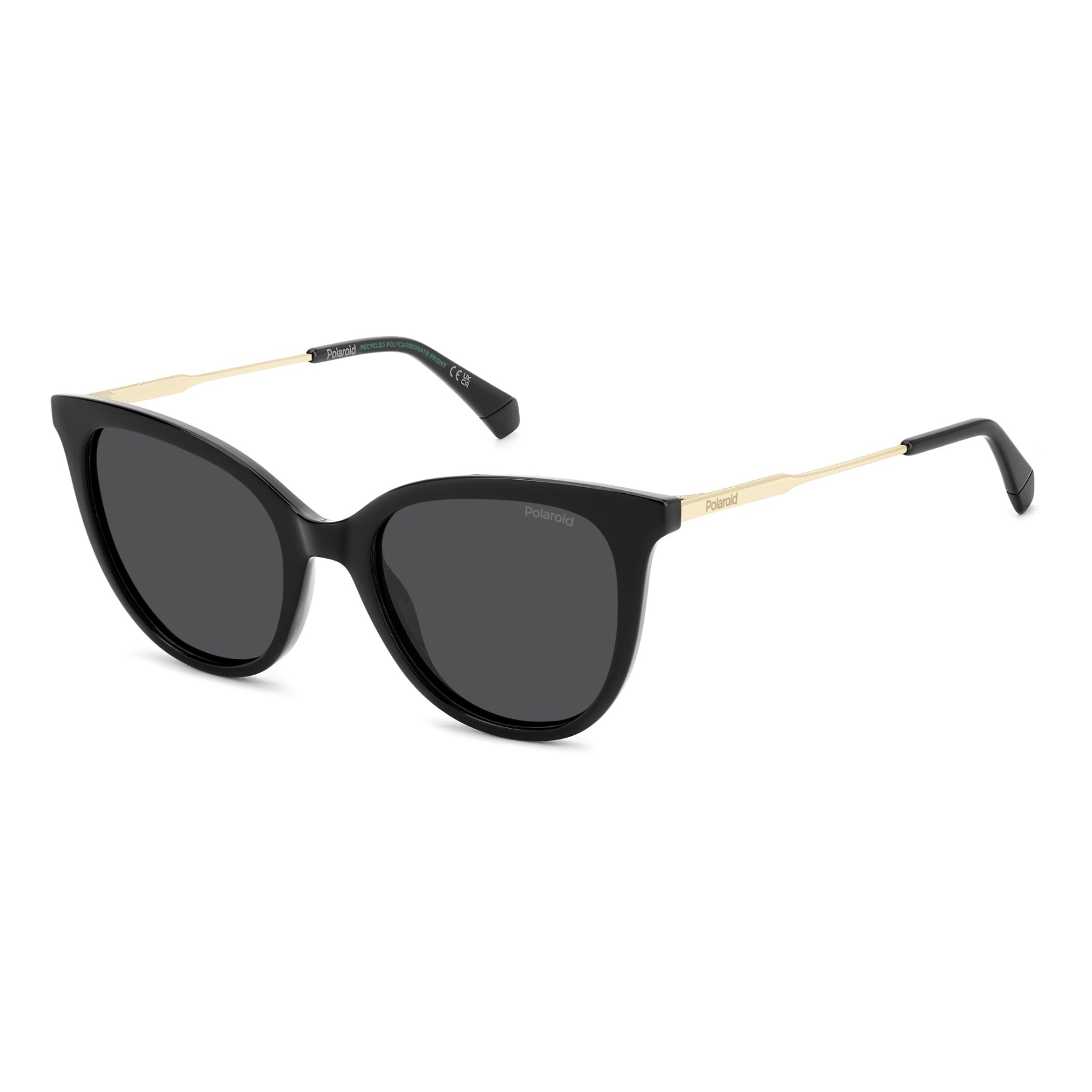 These Polaroid sunglasses are sure to hold a special place in the hearts and wardrobes of women everywhere. The cat-eye front, with sinuous lines and a lightweight feel, is the embodiment of informal elegance. It can be fitted with prescription sun lenses, because practicality is fundamental. The temples are minimalist too, with an engraved logo and matching end tips. The use of bio-based and recycled materials marks another step towards green fashion.