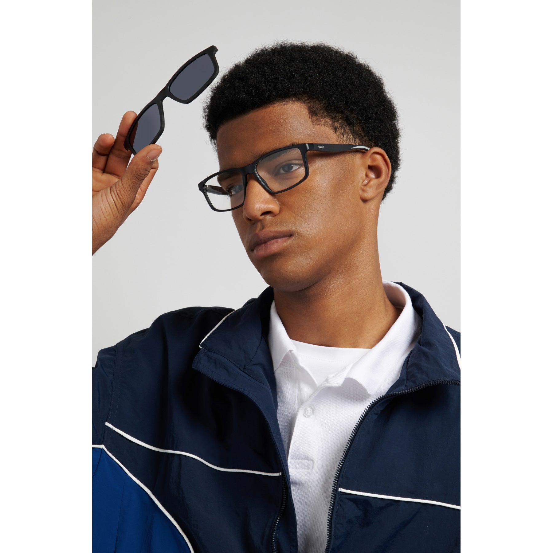 El estilo informal y la comodidad diaria definen estas gafas de sol de hombre. Para diseñarlas, Polaroid Eyewear se ha inspirado en el deporte y ha realizado una estructura ligera resistente al uso intensivo. Las varillas en eco-goma y eco-poliamida son flexibles y se ajustan perfectamente. Incluso el clip se reviste con goma, es fácil de usar y se ha hecho para durar. El uso de materiales sostenibles prueba el compromiso de Polaroid con el medio ambiente.
