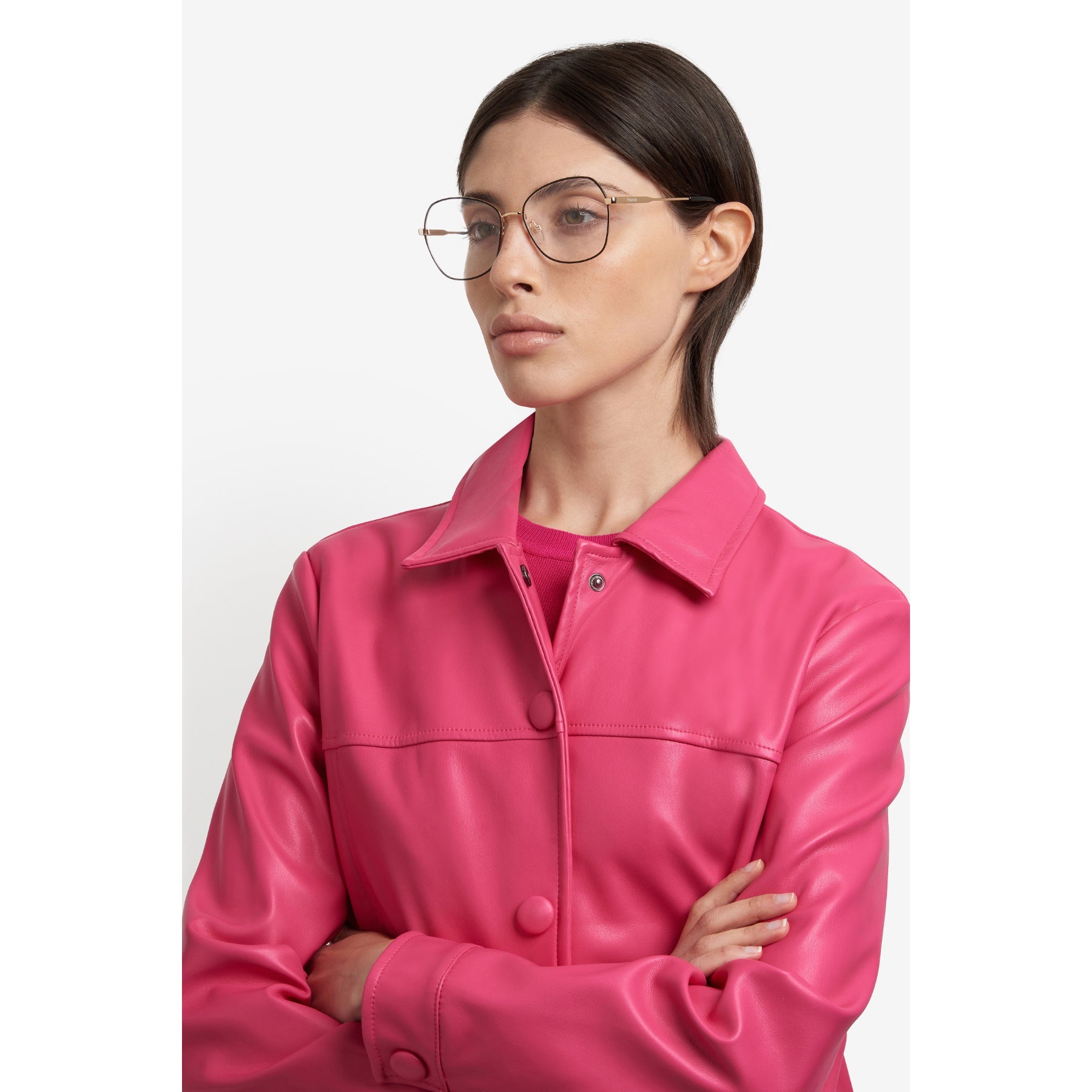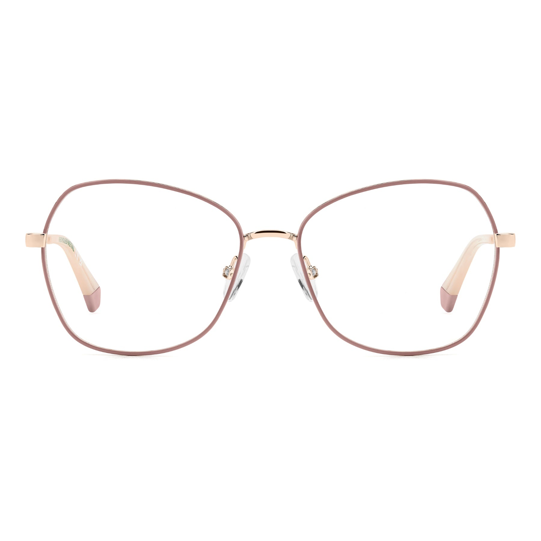 Polaroid sceglie una semplicità cool per questi occhiali da vista per donna. La silhouette lineare abbraccia lenti dalla forma a farfalla, per una resa stilistica impeccabile. Praticità oltre l’estetica grazie alla costruzione leggera, i naselli regolabili e i terminali confortevoli. Per una dose ulteriore di personalità basterà scegliere la variante con frontale smaltato. La montatura è in metallo riciclato, come conferma la dicitura sul terminale.