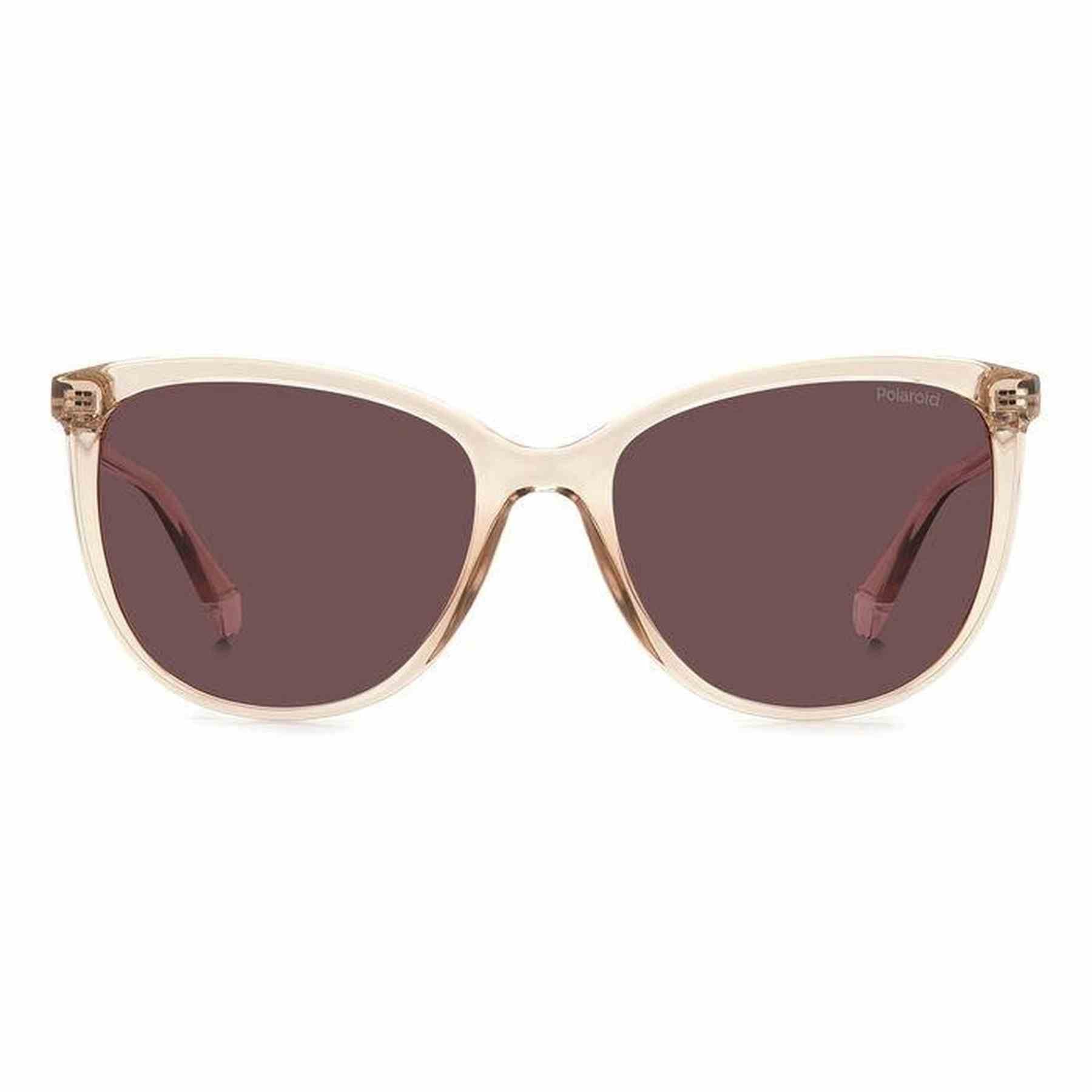 Questi occhiali da sole Polaroid hanno una montatura in policarbonato con frontale dalla forma femminile tondeggiante e aste firmate dal logo stampato. Anche i terminali sono personalizzati dal brand con colorazione a contrasto. È un occhiale da donna easy-to-wear ideale per ogni occasione e look.